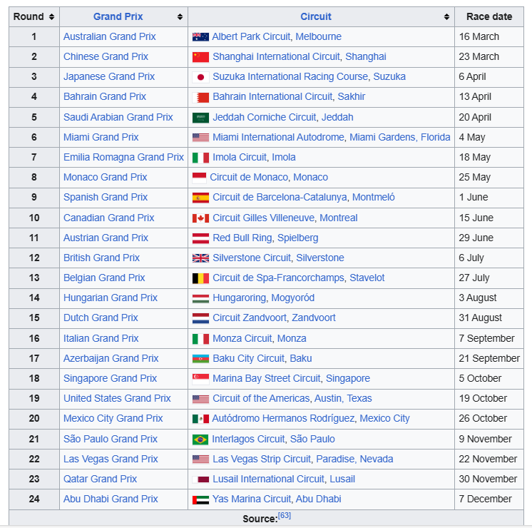 2025 F1 calendar