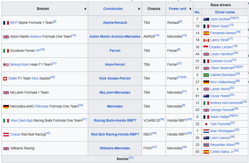 2025 FIA F1 Teams