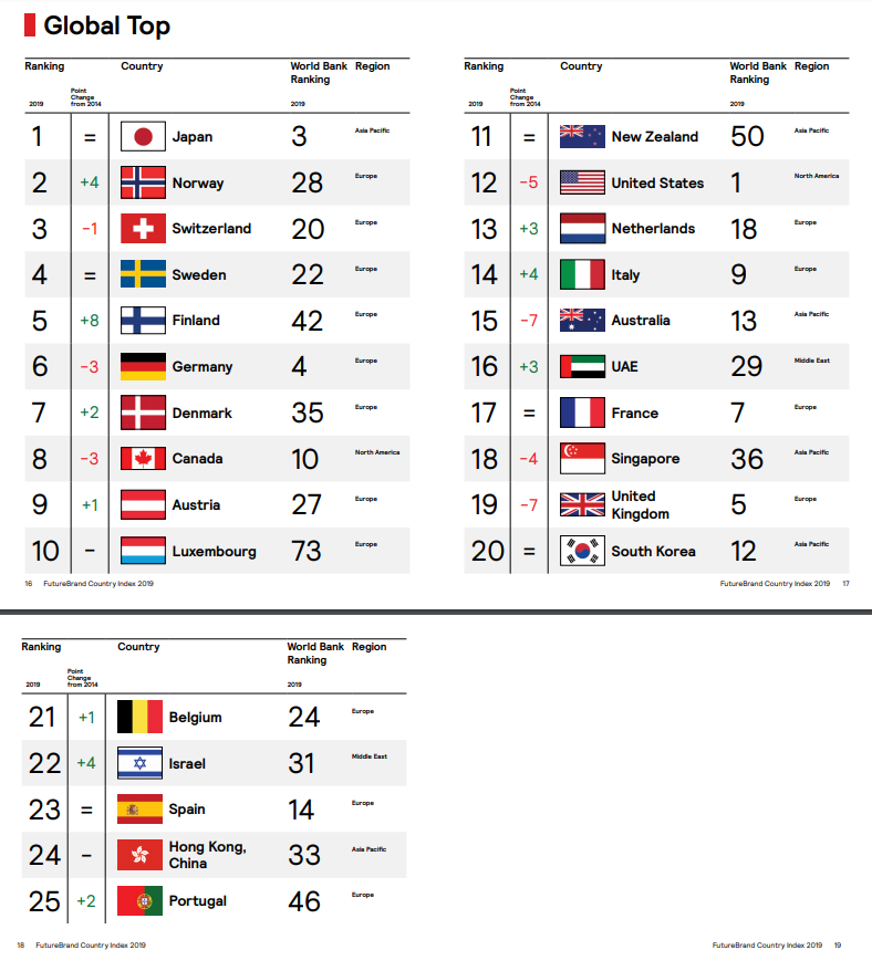Turismo - Country Brand Index 2019 - quality time - Global top 25