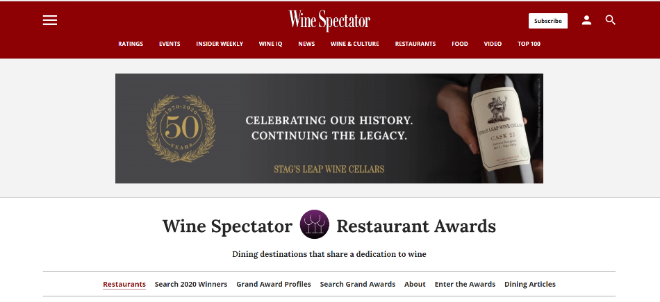 Wine Spectator, Awards - best restaurants for winelovers